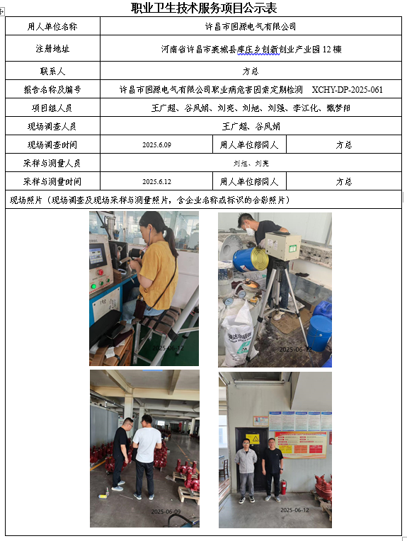 许昌市国源电气有限公司2025年度职业病危害因素定期检测