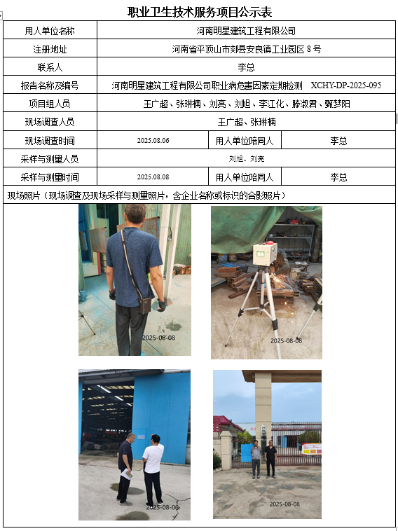 河南明星建筑工程有限公司2025年度职业病危害因素定期检测