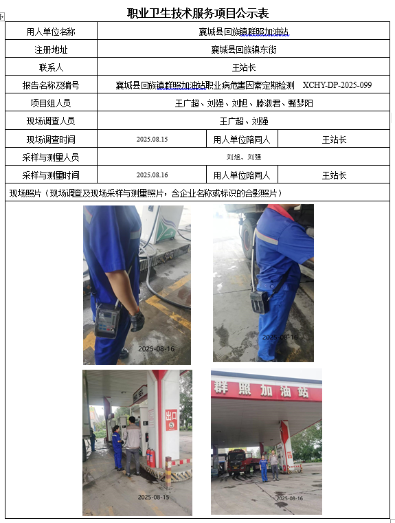 襄城县回族镇群照加油站2025年度职业病危害因素定期检测
