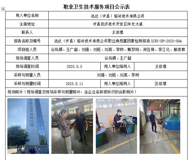 迅达(许昌)驱动技术有限公司2025年度职业病危害因素检测报告