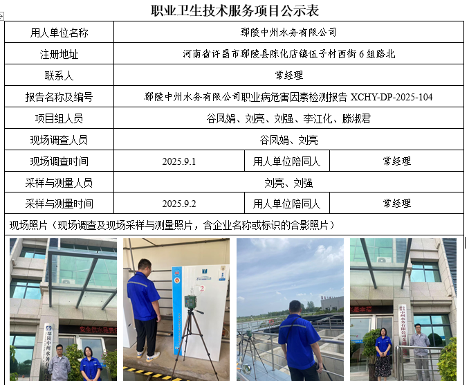 鄢陵中州水务有限公司2025年度职业病危害因素检测报告