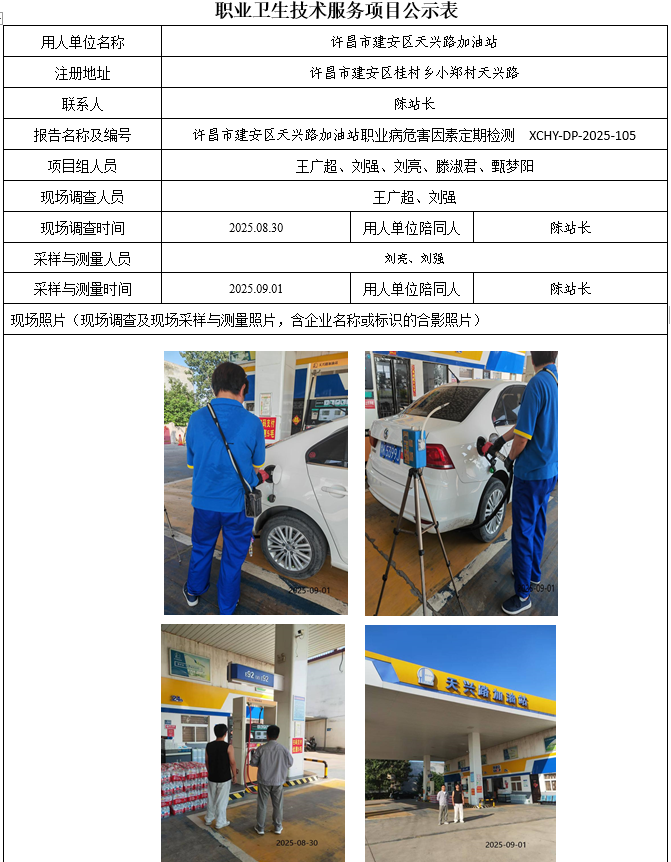 许昌市建安区天兴路加油站2025年度职业病危害因素定期检测