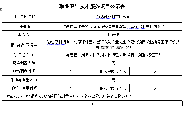 彩达新材料有限公司环保型油墨研发与产业化生产建设项目职业病危害预评价报告