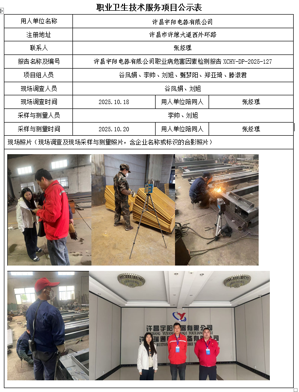 许昌宇阳电器有限公司2025年度职业病危害因素检测报告