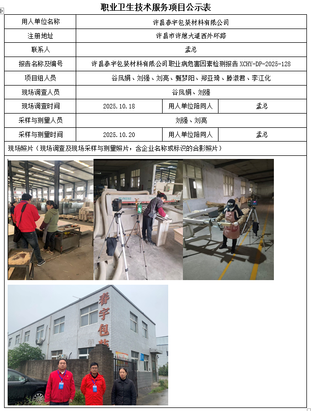 许昌春宇包装材料有限公司2025年度职业病危害因素检测报告