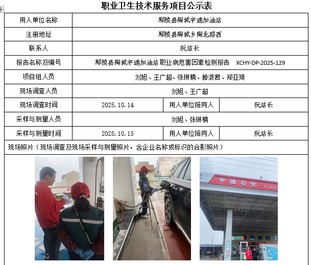 鄢陵县陶城宇通加油站2025年度职业病危害因素检测报告
