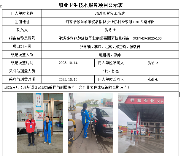 淮滨县祥和加油站2025年度职业病危害因素检测报告