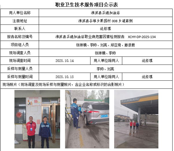 淮滨县正通加油站2025年度职业病危害因素检测报告