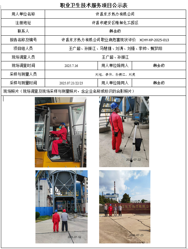 许昌东方热力有限公司2025年度职业病危害现状评价